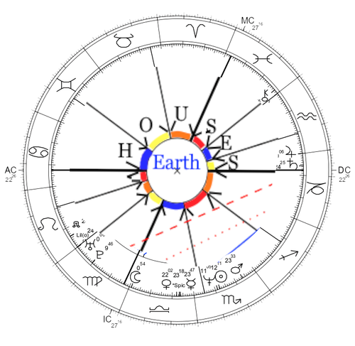 Where is the Earth in the chart? The usual answer is that it’s at the centre, half way between Ascendant and Descendant, where the horizon crosses the meridian.